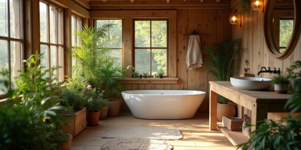 Rame din lemn natural – pentru o baie caldă, organică, inspirată de natură. Foarte populare în amenajările rustice sau scandinave.